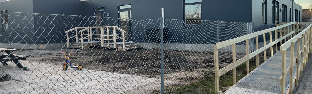 Midlertidig daginstitution med fire stuer, fællesarealer og personalefaciliteter