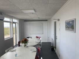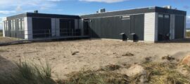 Denne kontorbygning i ét plan i Rødbyhavn fremstår som en gennemført og funktionel løsning, hvor fleksibilitet, komfort og kvalitet går hånd i hånd. Bygningen er opført af seks genbrugte og nyrenoverede 12 meter moduler af modellen Multi og er effektivt indrettet med otte separate kontorer samt et stort og indbydende mødelokale, der naturligt bliver samlingspunktet i hverdagen.