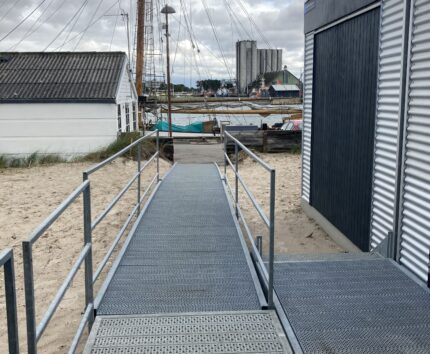 Ved hovedindgangen er der etableret en rampe, som sikrer let og ubesværet adgang for både kørestolsbrugere og gangbesværede. Indretningen er gennemtænkt og funktionel med to praktiske tekøkkener, et rummeligt gangareal med god plads til bevægelse samt velindrettede toiletfaciliteter, hvoraf det ene er handicapvenligt og tilpasset særlige behov. Her er der skabt rammer, der fungerer i praksis – også i en travl arbejdsdag.