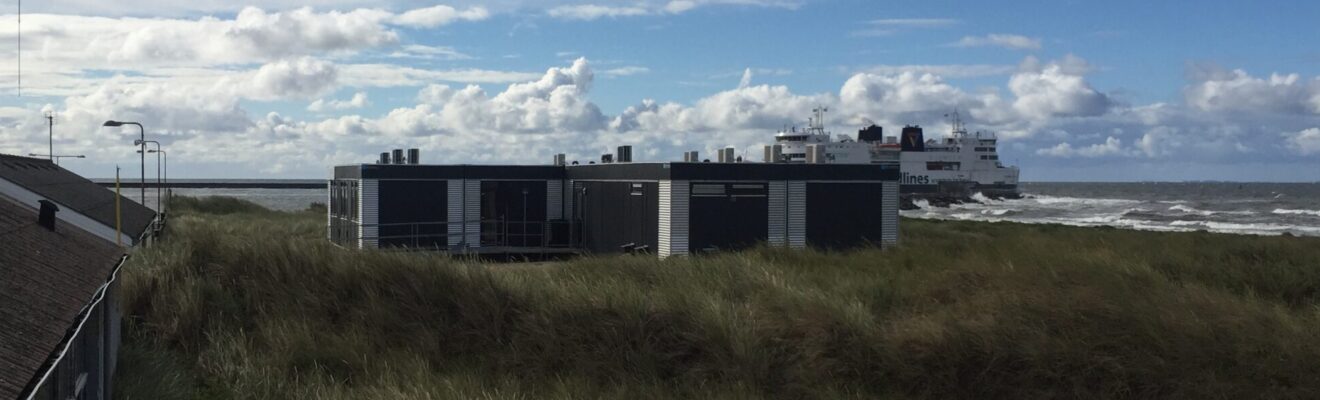 Midlertidigt kontor på stranden ved Femern